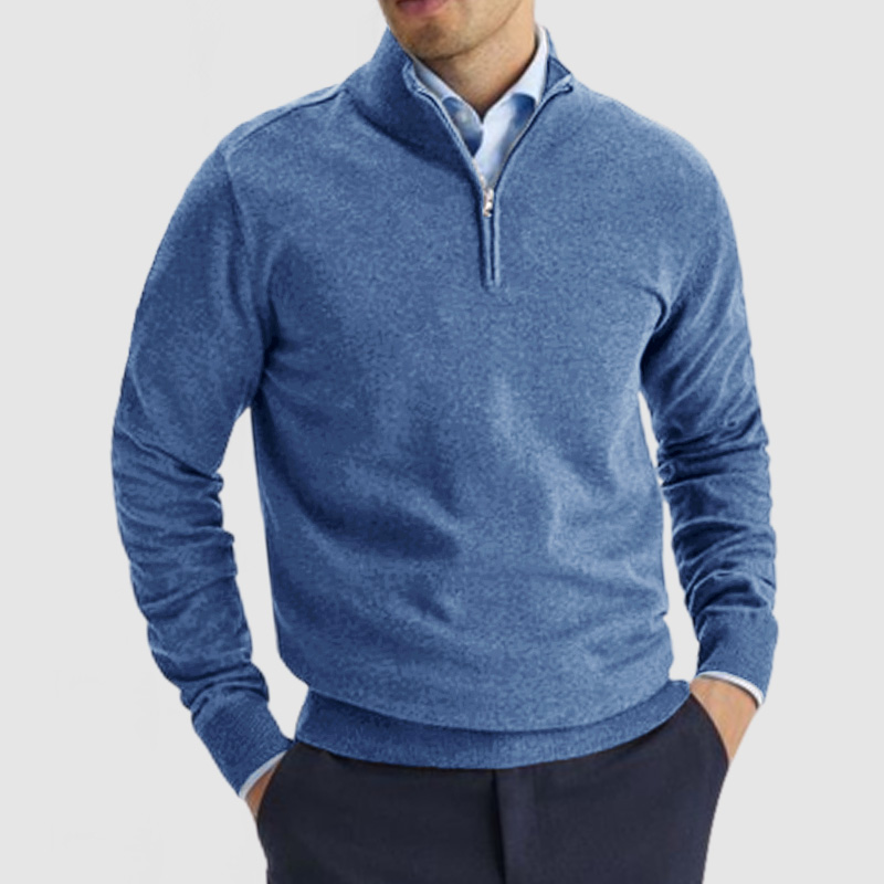 Men's New Polo Neck Quarter Zip Sport Long Sleeve Sweater