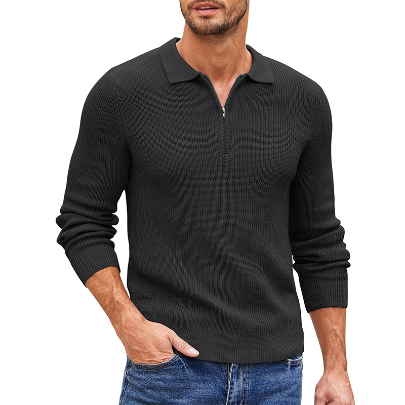 Men's Zip Long Sleeve Casual Knit Polo Sweater