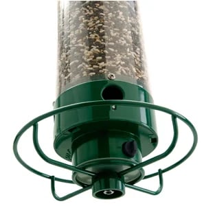 The feeder’s squirrel-proof design ensures less seed waste, which means money saved and fewer messes on the ground. Plus, the large 5 lb seed capacity ensures you won’t have to worry about birds emptying your feeder too quickly during peak feeding times. Convenient internal baffles also help to keep seed flowing freely to the ports as birds feed.