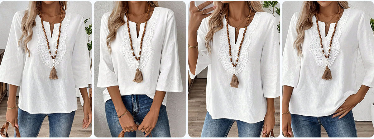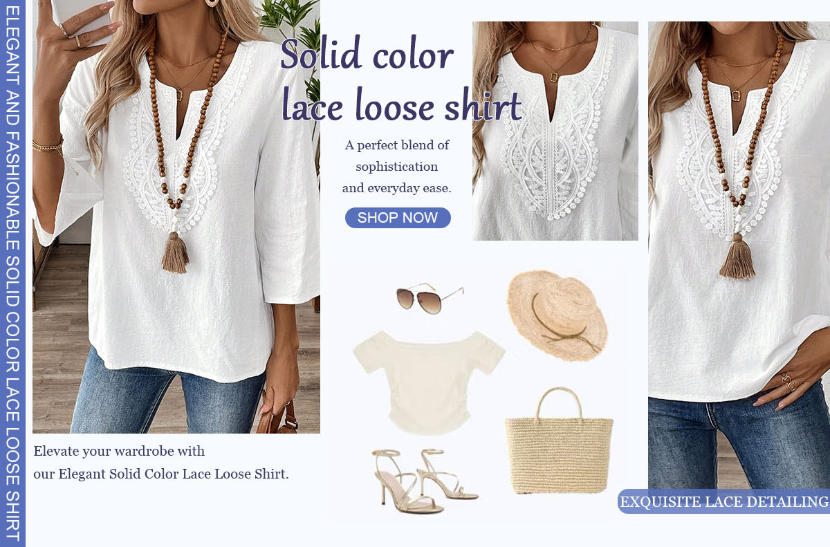Elevate your wardrobe with our elegant solid lace loose shirt - the perfect blend of sophistication and everyday ease.