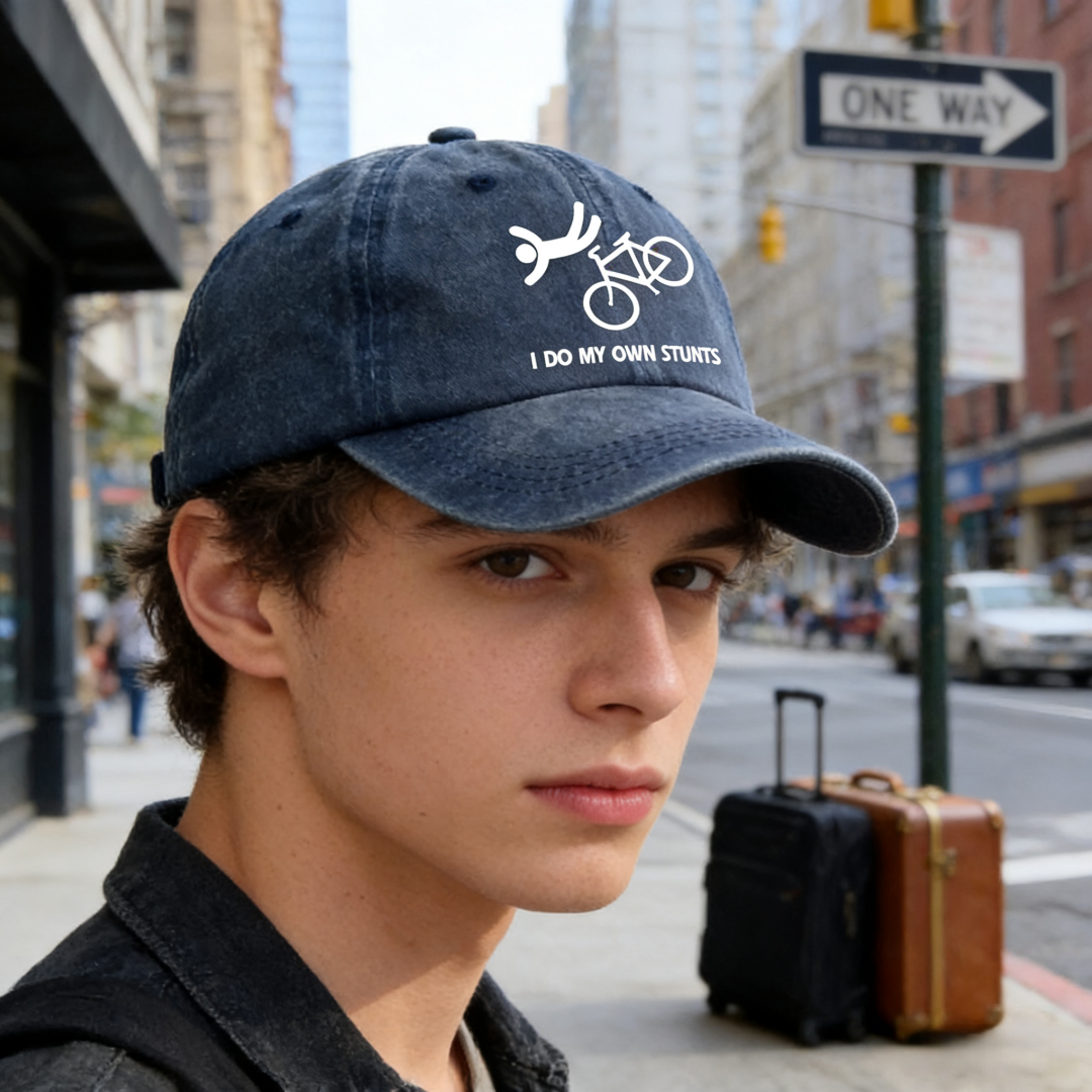 “I Do My Own Stunts” Cap — Bold Print, Everyday Comfort