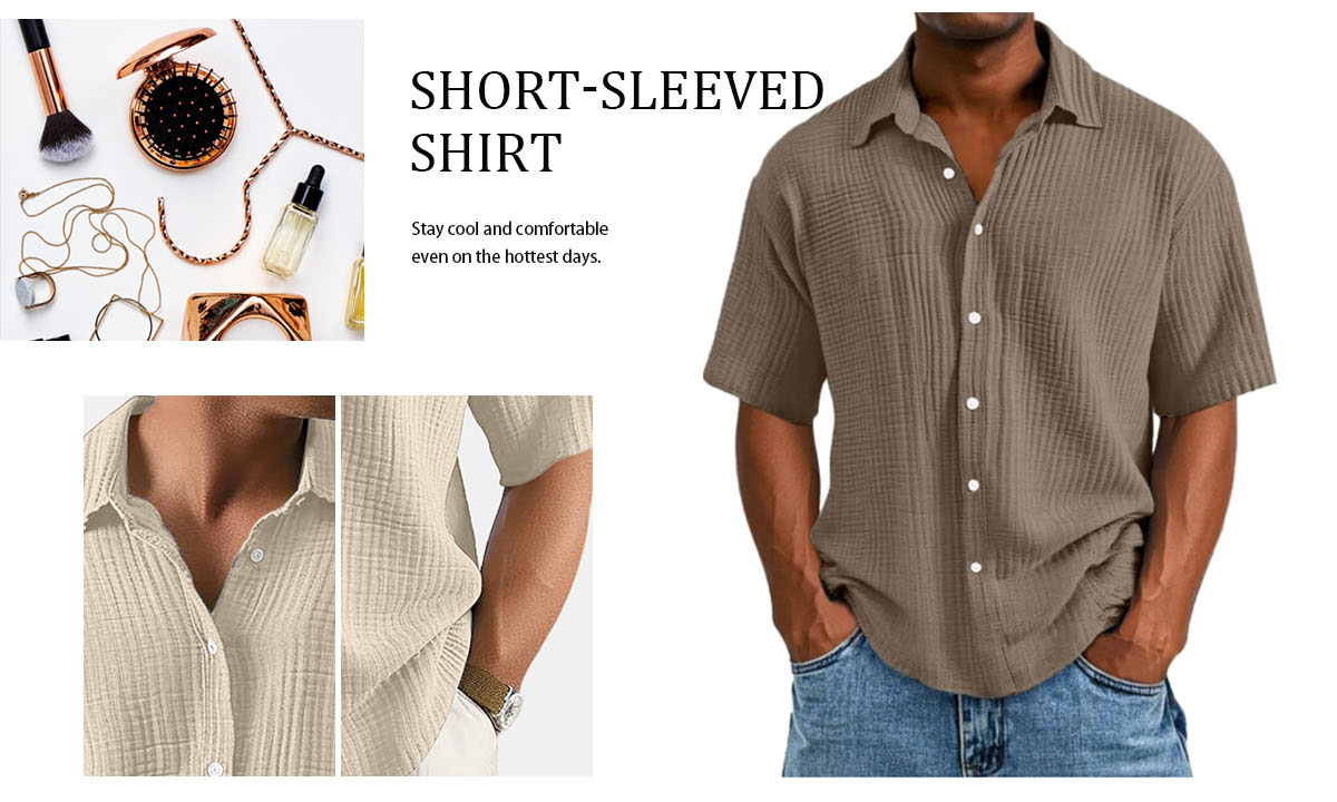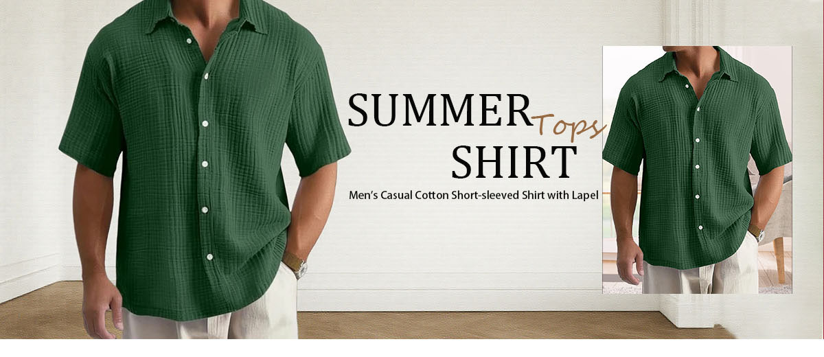 Men's Casual Cotton Short-sleeved Shirt with Lapel