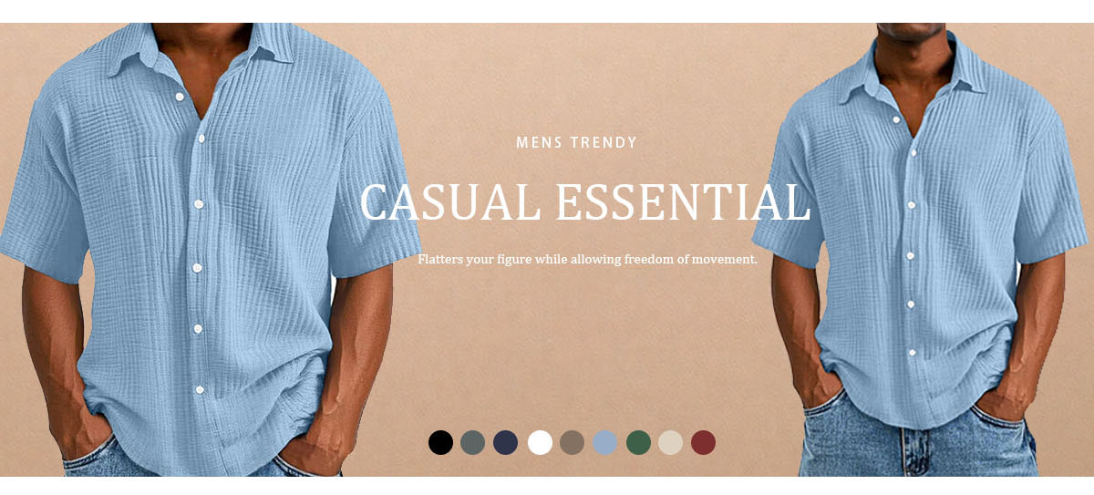 Classic Fit:Short sleeves, lapel collar, button-up, and clean solid colors for a timeless look.