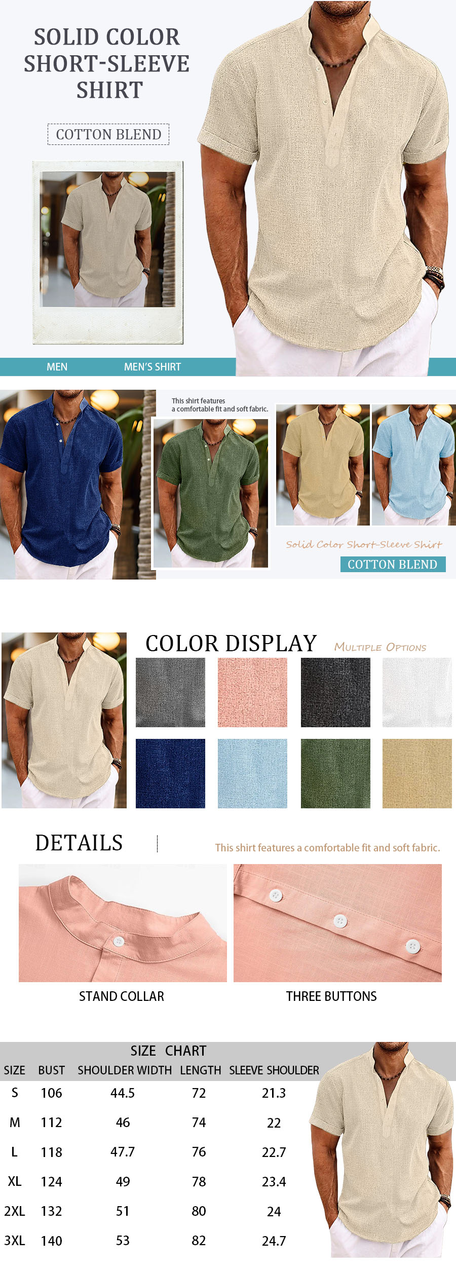 Solid Color Stand Collar Short-Sleeve Pullover Shaping Minimalist Shirt