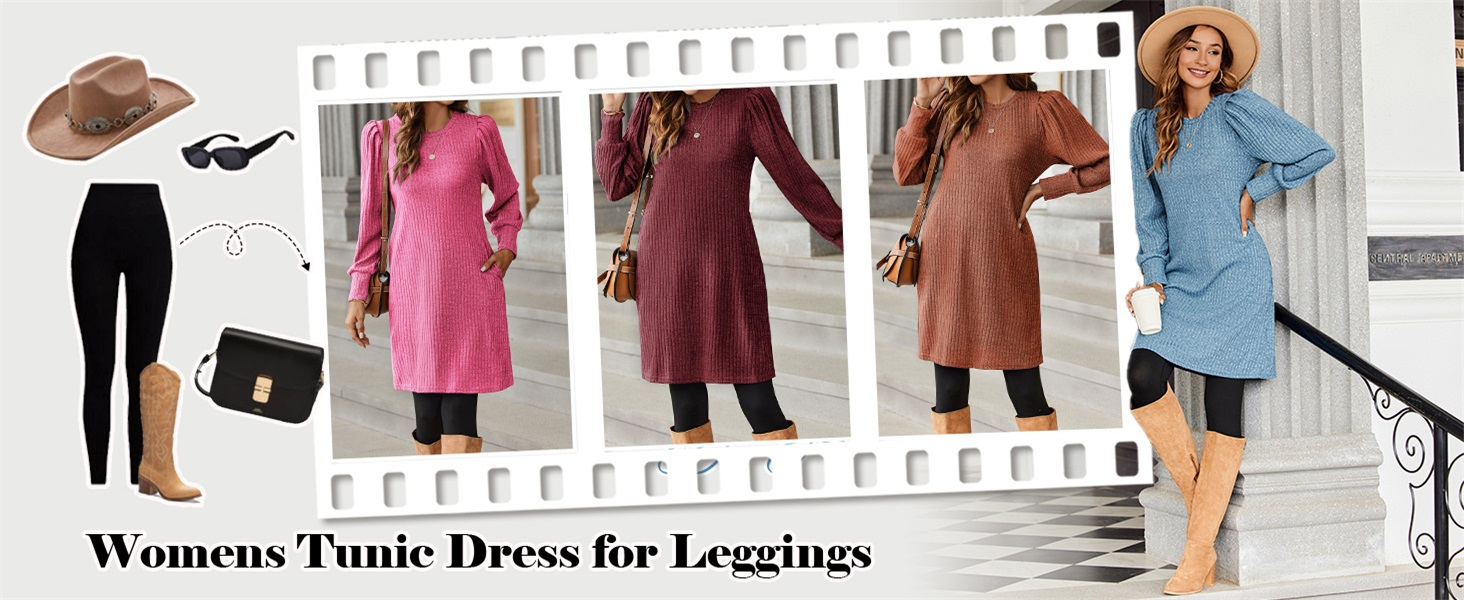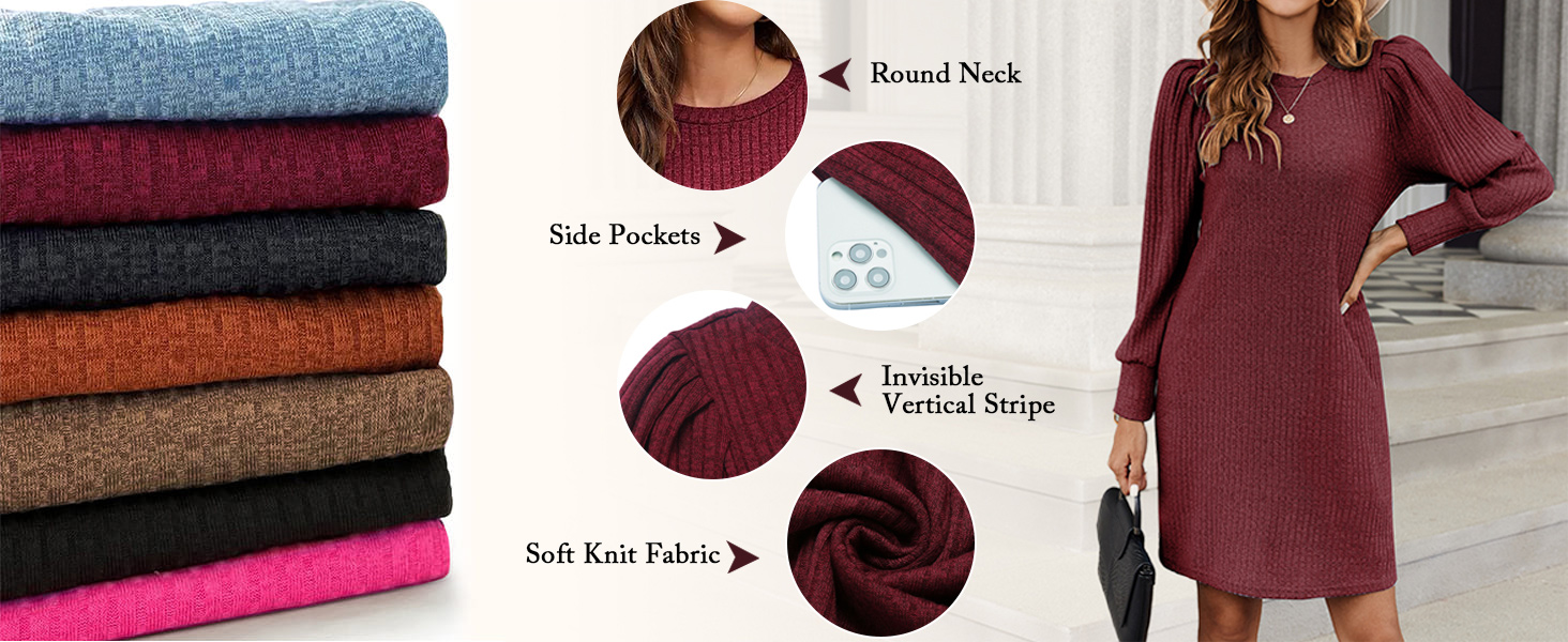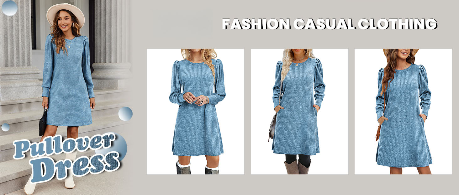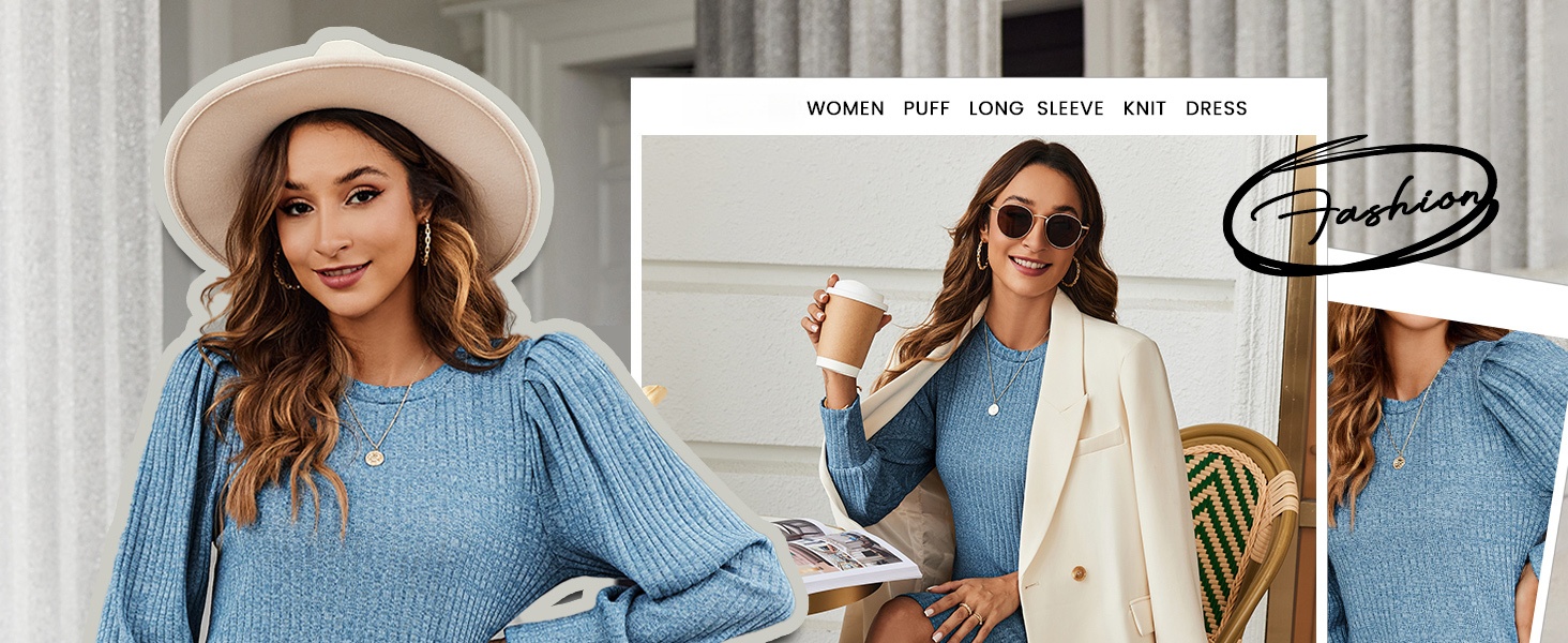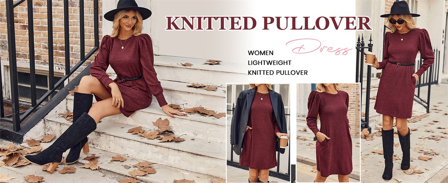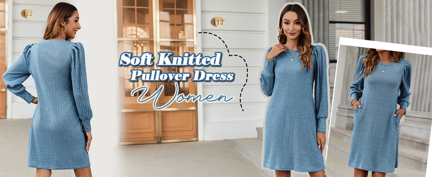 This fall and winter, feel comfortable and stylish in our women's knitted puff long-sleeve dress!